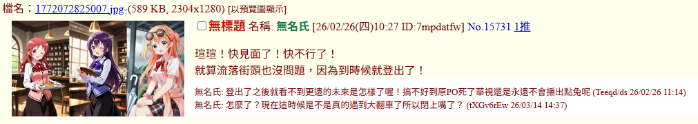 附加圖檔最大上傳資料量為 2000 KB。當回文時E-mail填入sage為不推文功能