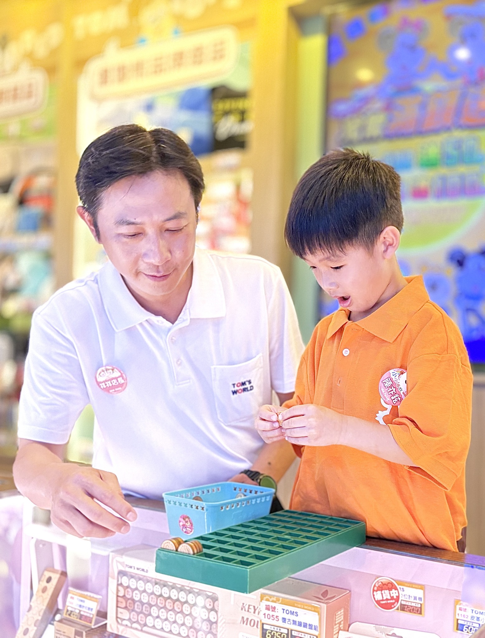 湯姆熊的員工制服,大部分是橘色的,
